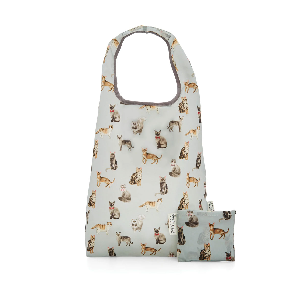 Borsa pieghevole ecologica color salvia con un bellissimo pattern composto da gatti di tante razze diverse!! Comodissima da portare sempre con sè per ogni evenienza!!