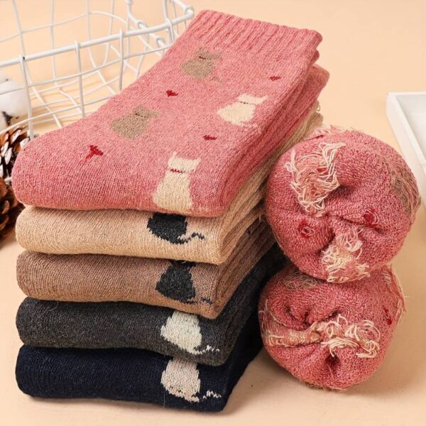Calzini molto morbidi e caldi, ideali per la stagione fredda, decorati con tanti gattini seduti e cuoricini rossi!! Una perfetta idea regalo per le tue amiche gattare… o per te stessa, perchè no!!