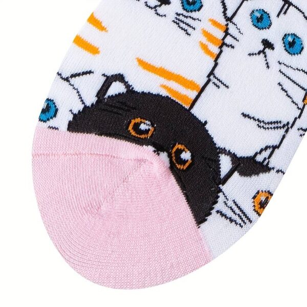 Calzini corti multicolore arancioni, blu e rosa decorati con tantissimi gatti e gattini di tutti i tipi!!