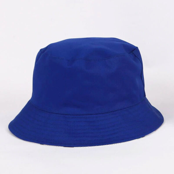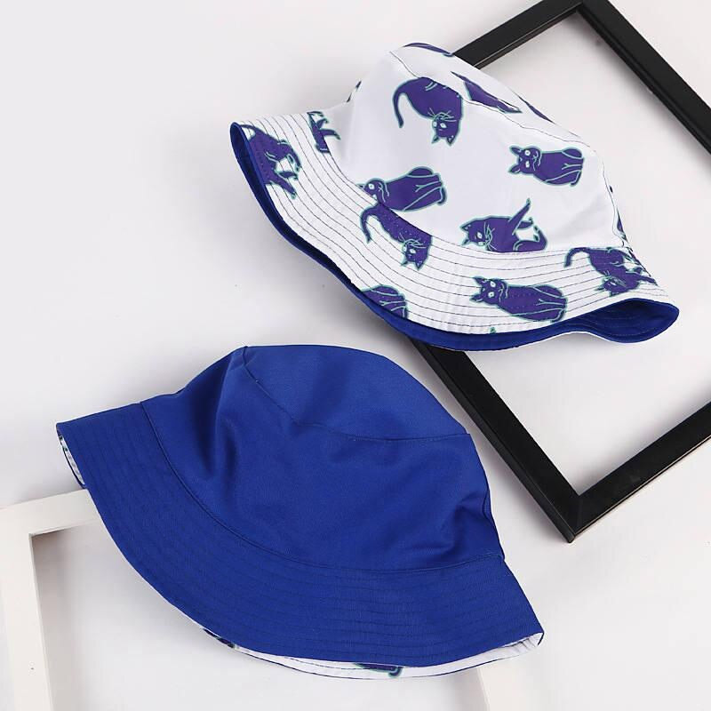 Cappello bianco stile pescatore decorato con gatti blu in varie posizioni!! È inoltre double face con l’inverso in blu monocromo.
