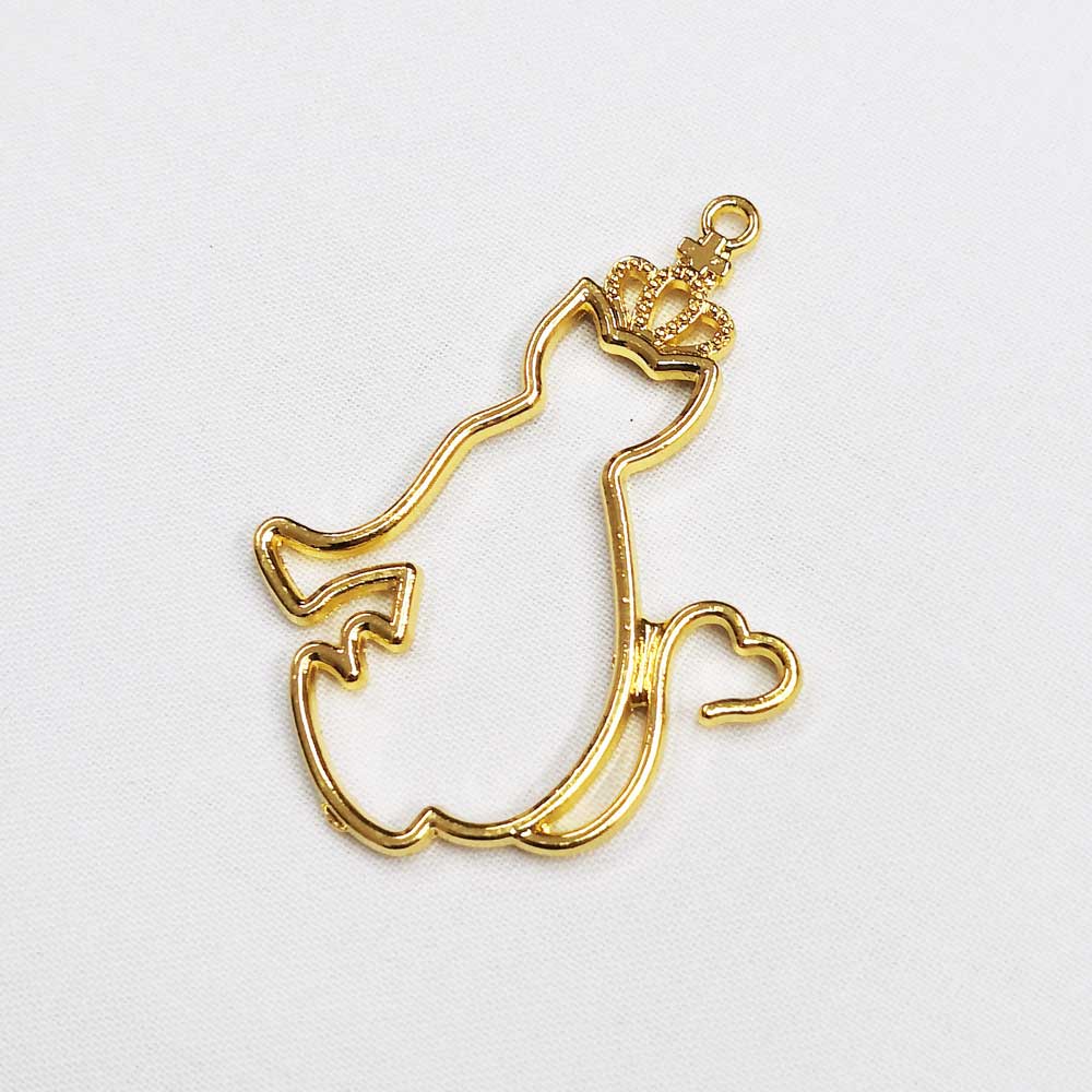 Ciondolo dorato a forma di gatto con una corona in testa, perfetto per collane gattose!!