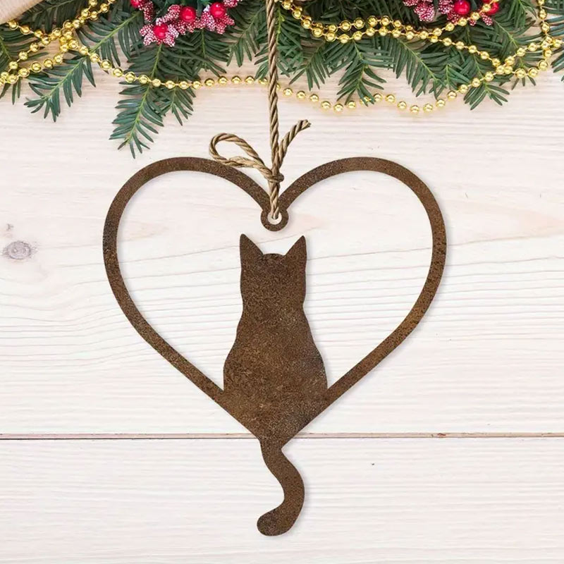Decorazione festiva da appendere in metallo a forma di gattino seduto dentro a un cuoricino!!