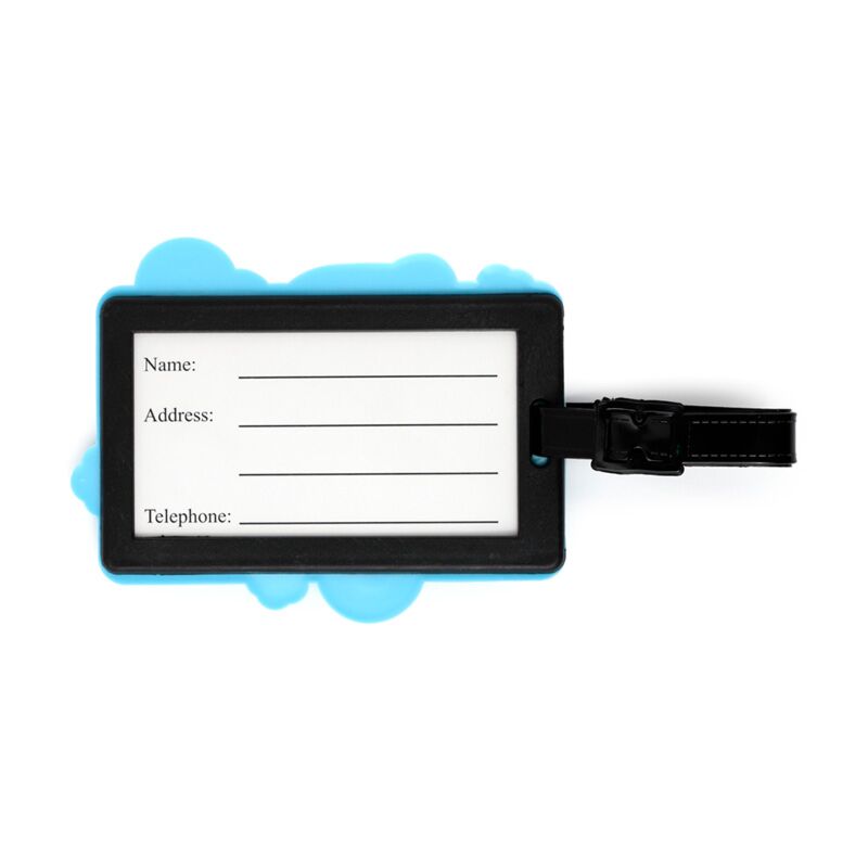 Etichetta da viaggio per bagagli azzurra con gattino bianco portafortuna