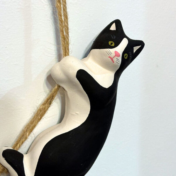 Gattino in ceramica bianco e nero, completamente fatto e dipinto a mano in Italia, da appendere alla parete o al soffitto!! Perfetto per decorare qualunque ambiente interno o esterno e portare tanta gattastica allegria!!