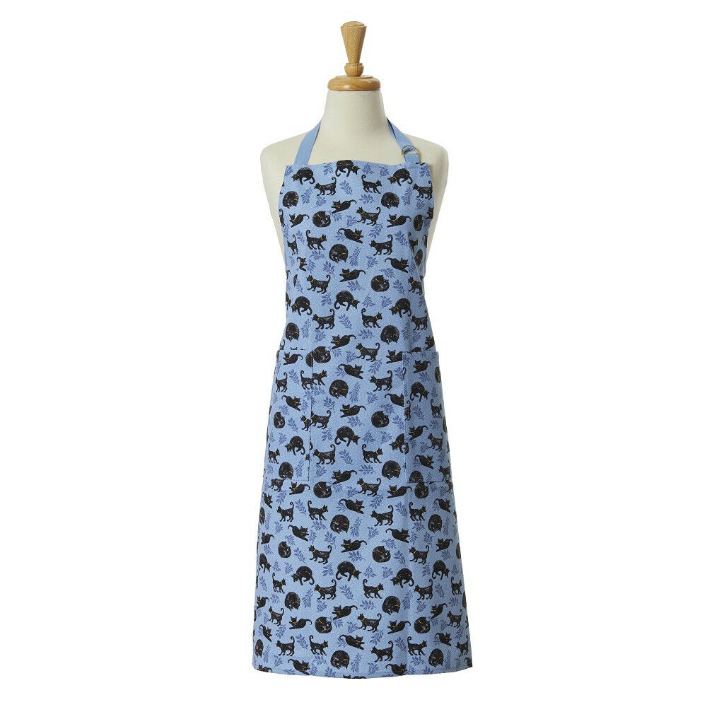Grembiule da cucina blu in 100% cotone di altissima qualità con tanti gatti e gattini neri in varie pose e posizioni!! Perfetto da aggiungere alla tua cucina e renderla ancora più… gattastica