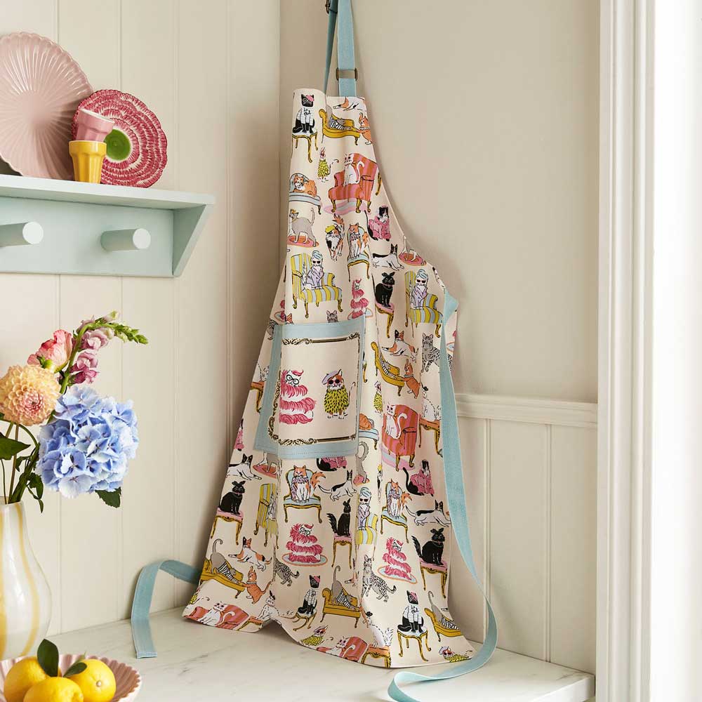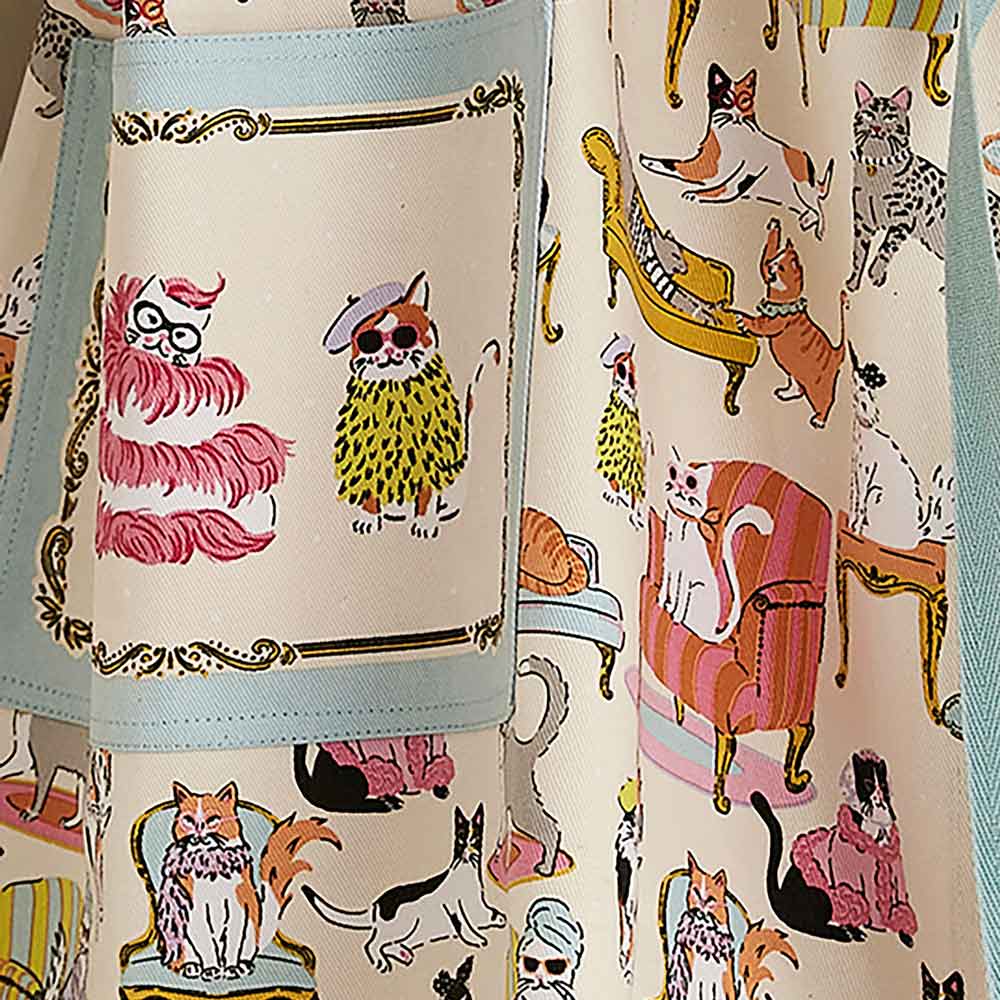 Grembiule da cucina in 100% cotone decorato con tanti gatti e gattini vestiti alla moda, davvero molto stilosi!!