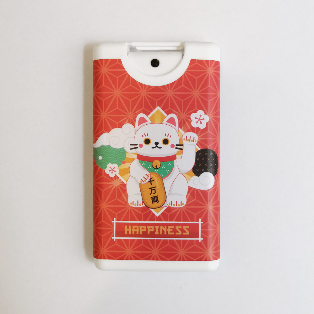 Igienizzante spray per le mani con il gatto portafortuna giapponese Maneki, pratico da mettere in borsa!!