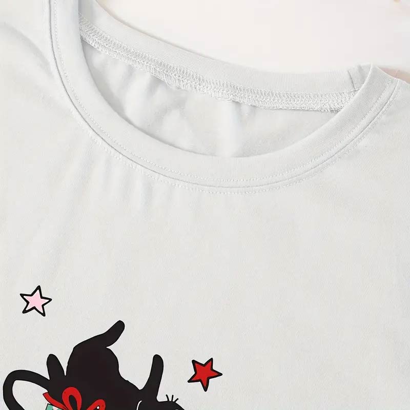Maglietta t-shirt bianca dal taglio classico decorata con tanti bellissimi gattini neri natalizi!! Perfetta da indossare durante il periodo delle feste per renderle ancora più divertenti e gattose!!
