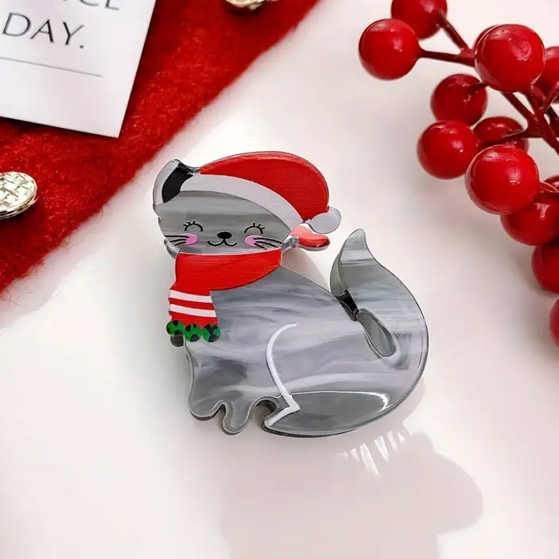 Molletta per capelli festiva a forma di gatto natalizio con cappellino di Babbo Natale!! Perfetta idea regalo, o da indossare ai tradizionali pranzi e cene natalizie in compagnia!!