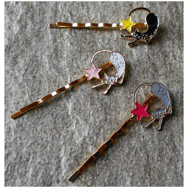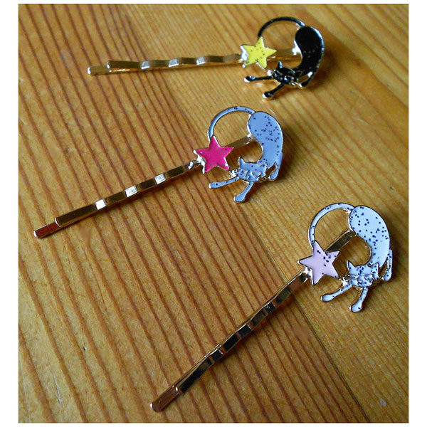 Mollette con gatto e stella. In metallo laccato.