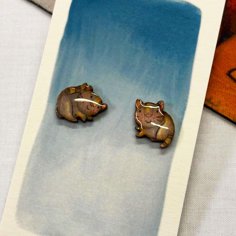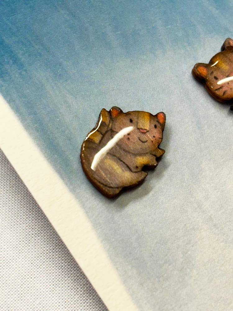 Orecchini a lobo in legno di tiglio smaltato a forma di due gattini grigi in due diverse posizioni!! Davvero carini da indossare tutti i giorni!!