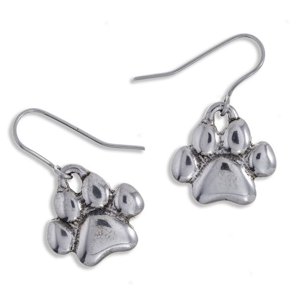 Orecchini con zampina gatto, in peltro
