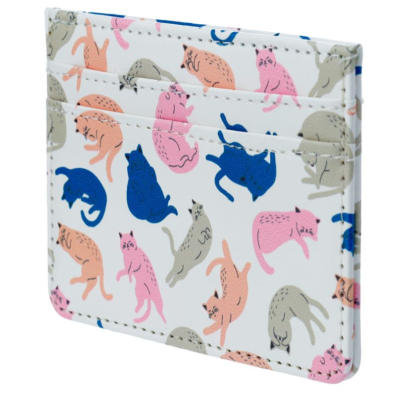 Porta carte di credito bianco decorato con gatti colorati in tante pose simpatiche e divertenti!!