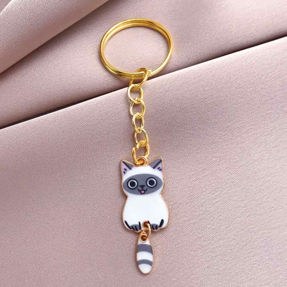 Piccolo portachiavi in metallo a forma di gattino siamese