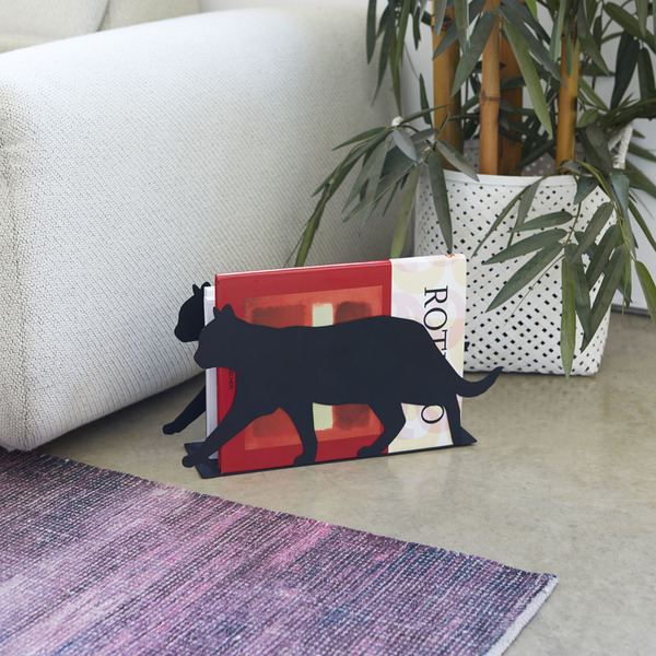 Portariviste in lamina di metallo tagliata e piegata a forma di silhouette di gatto nero. Un elegante e utile complemento d’arredo per le gattare e i gattari più esigenti!!