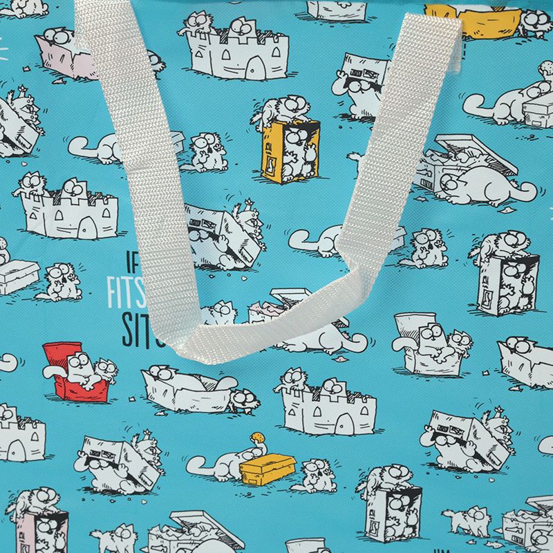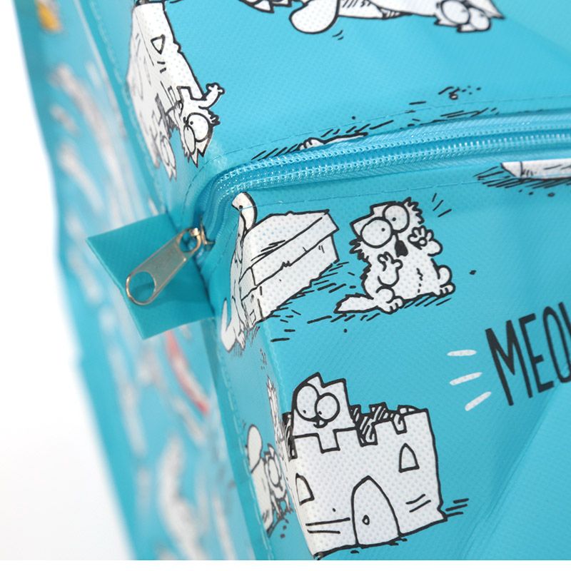 Grande e capiente sacca azzurra con i disegni del gatto Simon’s cat