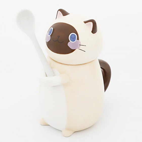 Set di tazza e cucchiaino in ceramica a forma di gatto siamese