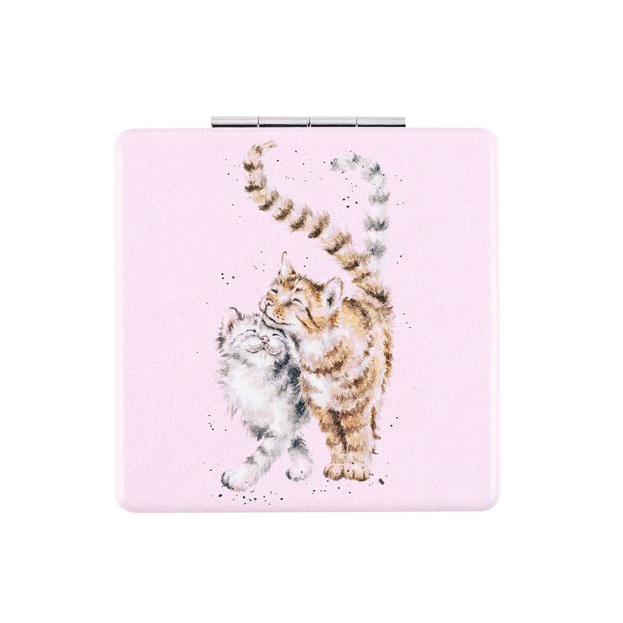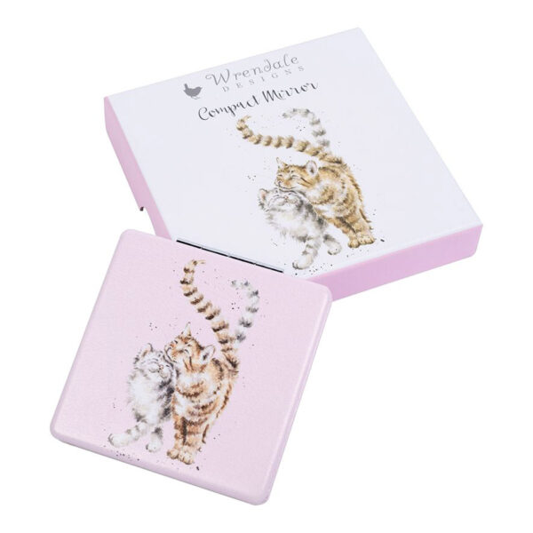 Specchietto da borsa in metallo rivestito all’esterno in ecopelle decorato con un bella illustrazione di due gatti innamorati!! Lo specchietto è inoltre provvisto di una squisita confezione regalo!!
