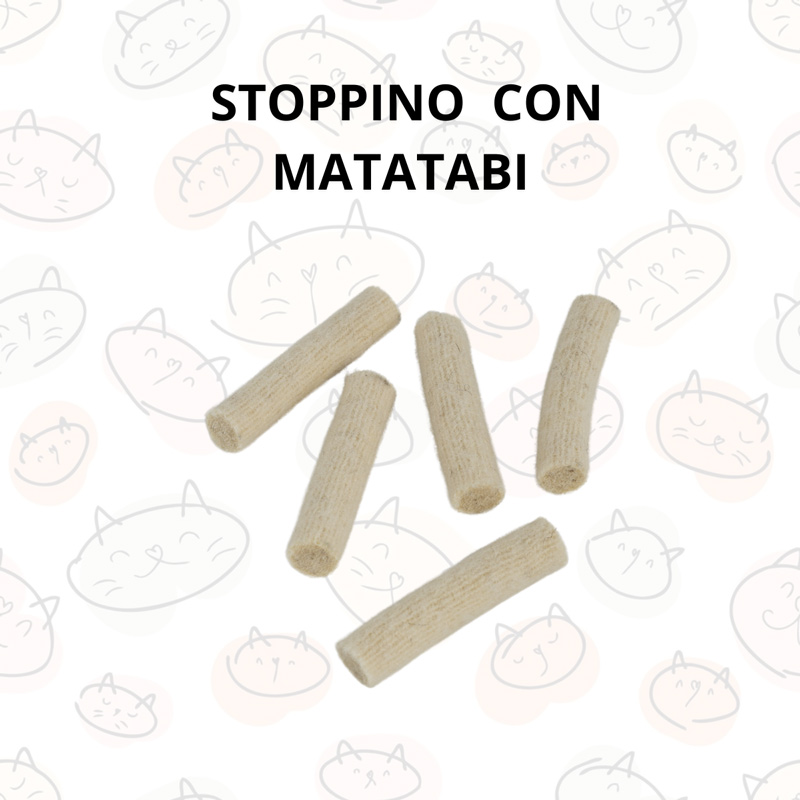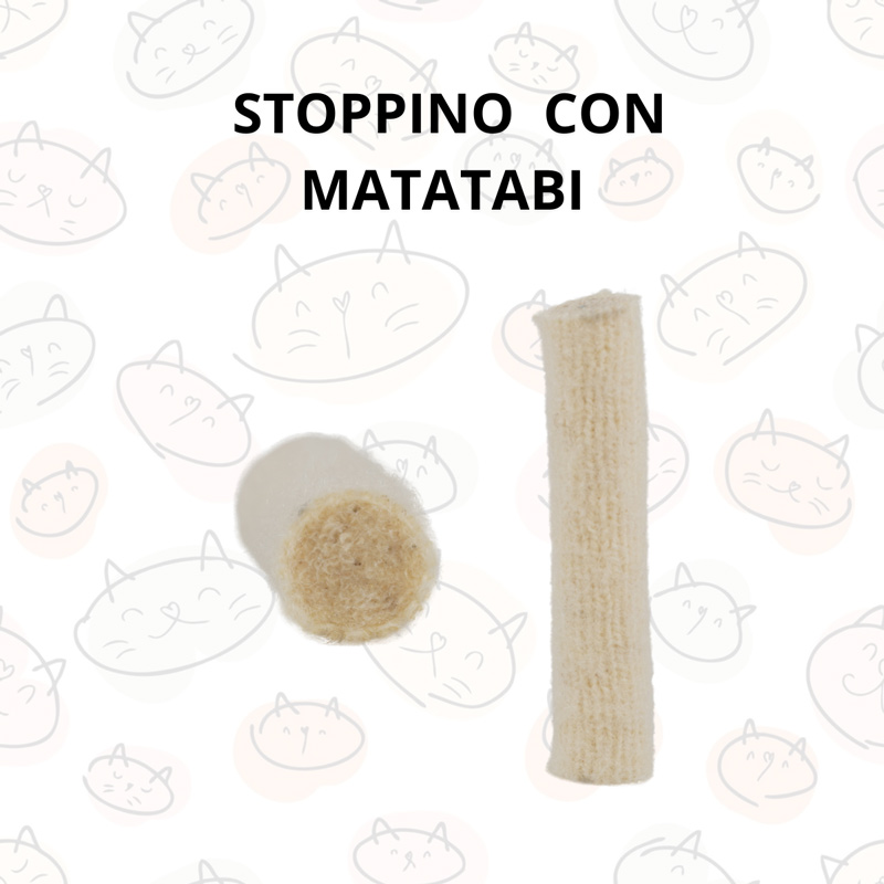 Lo Stoppino è un gioco leggero, durevole e divertente. Aromatizzato al matatabi, questo spesso nastro di tessuto è sicuro al 100%: non perde peli o fili pericolosi per il gatto. Resistente e soffice allo stesso tempo, è la preda ideale per il vostro gatto, in cui può affondare denti ed artigli senza rovinare il materiale. La leggerezza del gioco consente al gatto di trasportarlo facilmente e lanciarlo in aria, rendendo più divertente il gioco. Stimola il gioco della caccia.