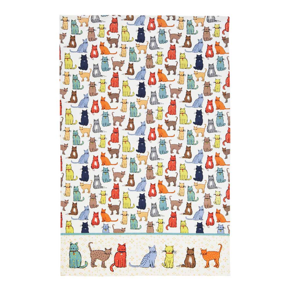 Strofinaccio in cotone da cucina bianco con gatti colorati