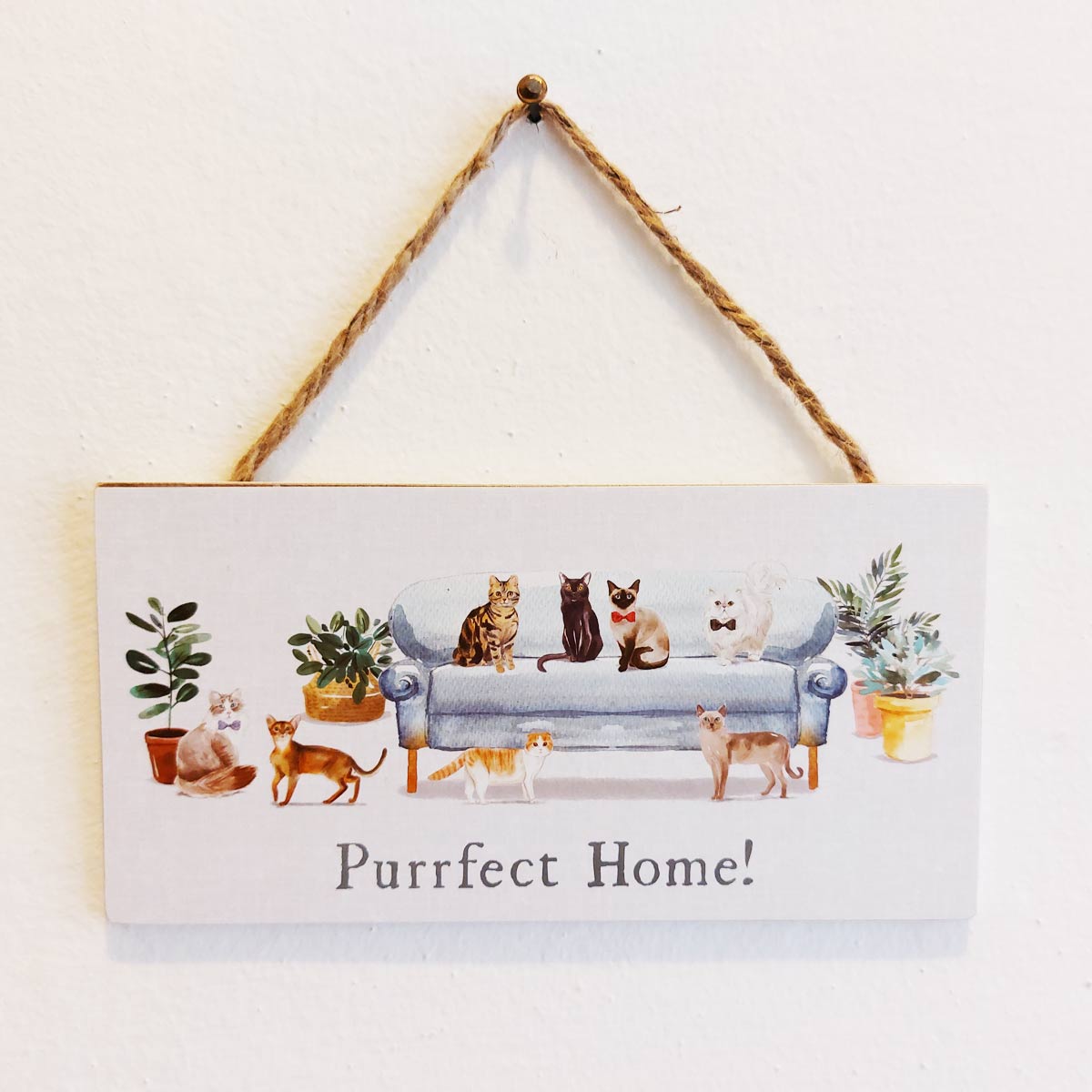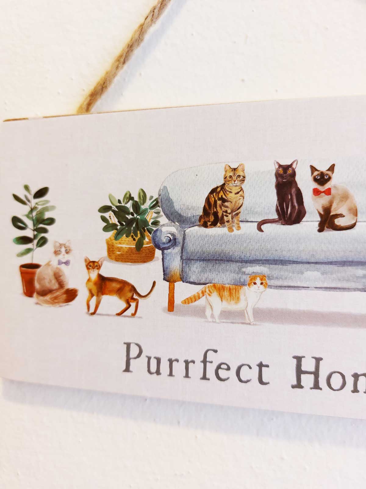 Targhetta in legno con gatti sul divano