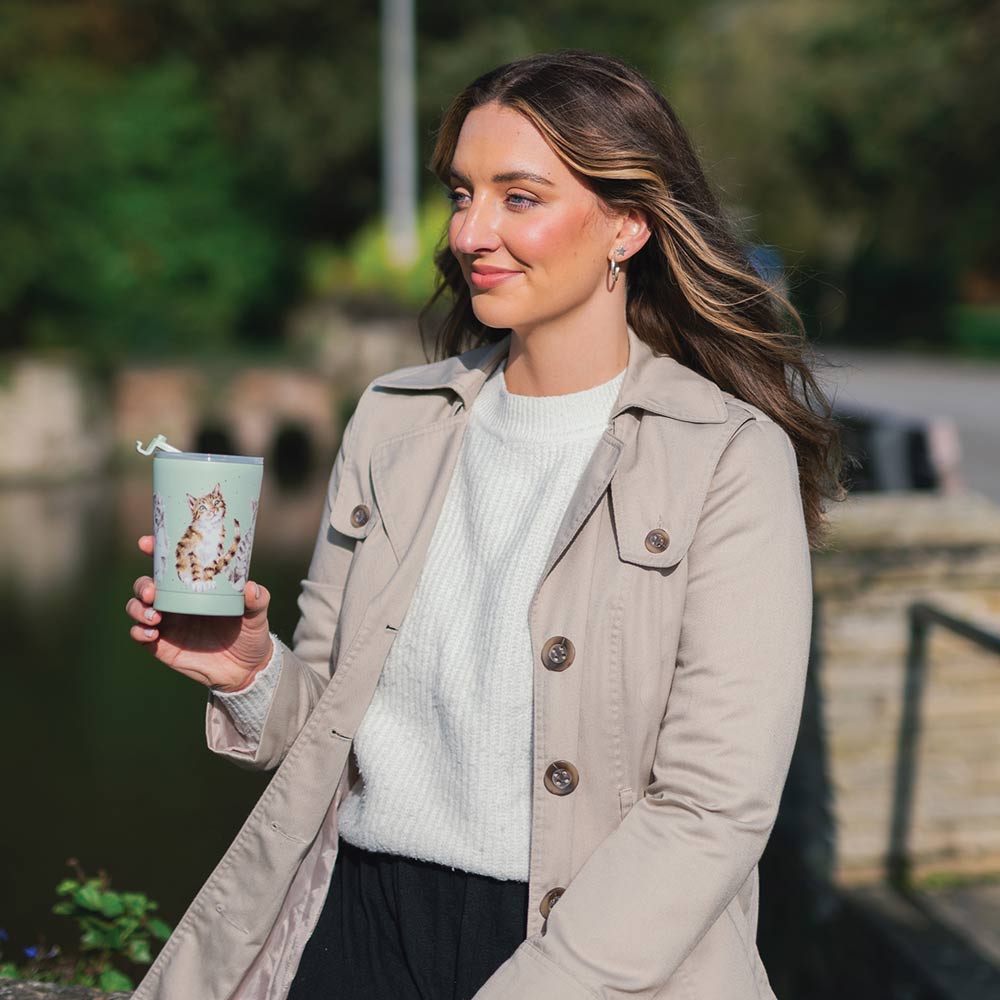 Tazza termica da viaggio in acciaio inossidabile e tappo in plastica decorata con tante, bellissime illustrazioni di gattini!! La chiusura del tappo in plastica è a vite, garantendo sicurezza e durevolezza, mentre la tazza in sè mantiene le bevande calde per 12 ore!! Davvero perfetta da portare sempre con te, anche per i viaggi più lunghi!!