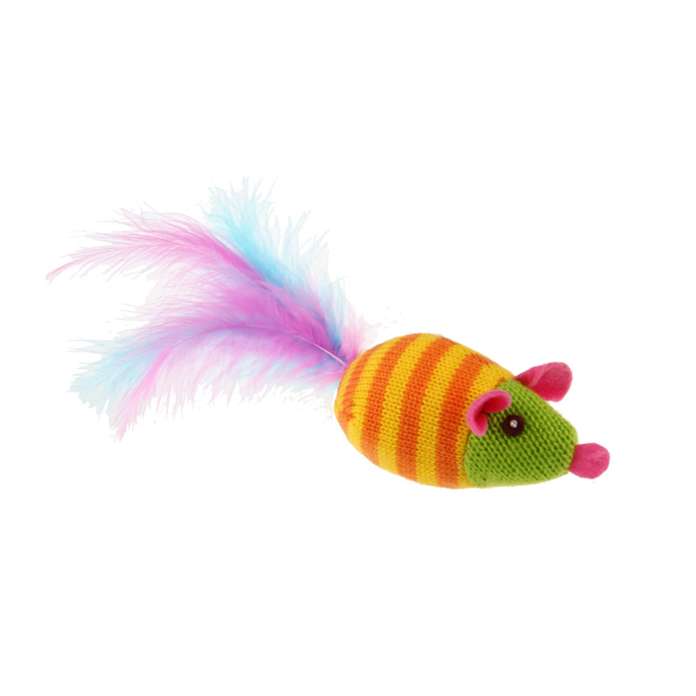 Topolino super colorato con una leggerissima piuma multicolore. Divertimento assicurato per tutti i gatti del mondo!!