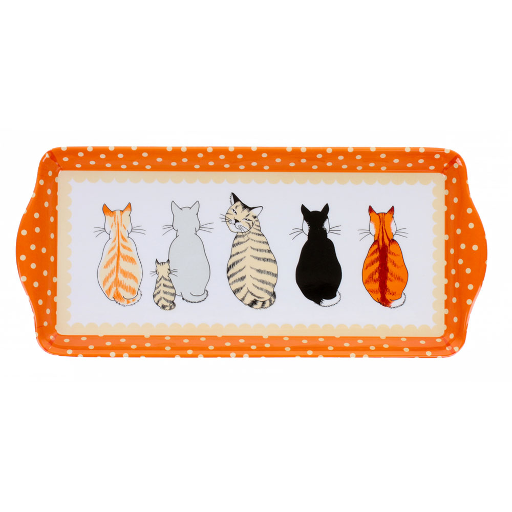 Piccolo vassoietto bianco e arancione decorato con gatti e gattini seduti, ideale per addolcire le tue colazioni in compagnia di tanti mici!!